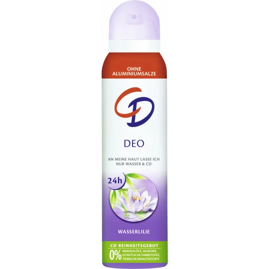 CD Deo Spray mit natürlichem Wasserlilien-Extrakt bietet lang anhaltende Frische, Sicherheit und Pflege. Das effektive Deo-Wirksystem garantiert 24 Stunden Schutz vor Körpergeruch ohne weiße Rückstände auf der Kleidung zu hinterlassen.